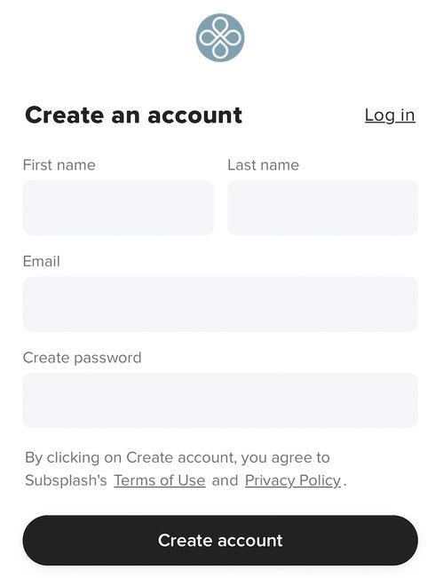 If you have a Subsplash account, you can proceed with logging in. If you do not have an account, select Create an account.